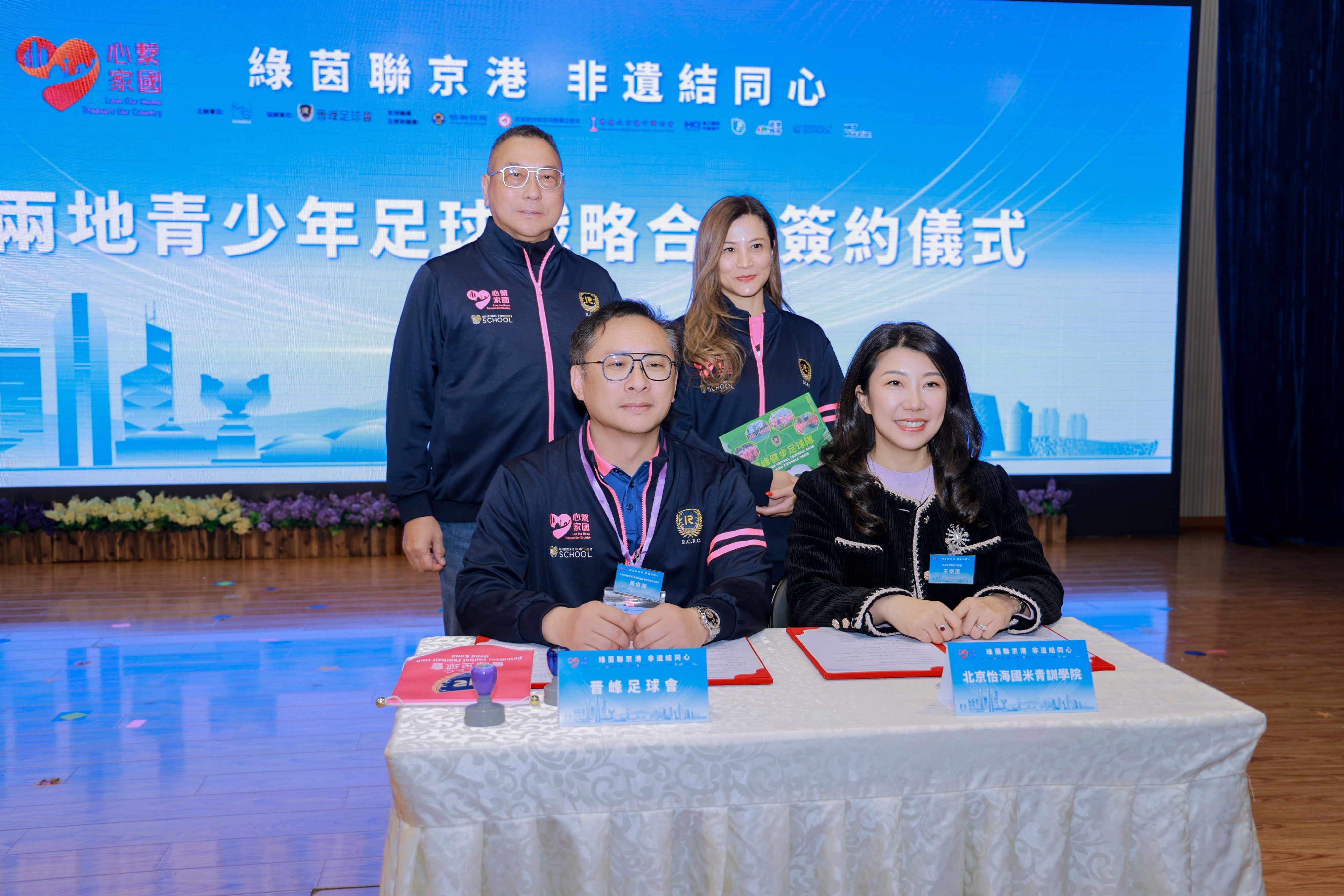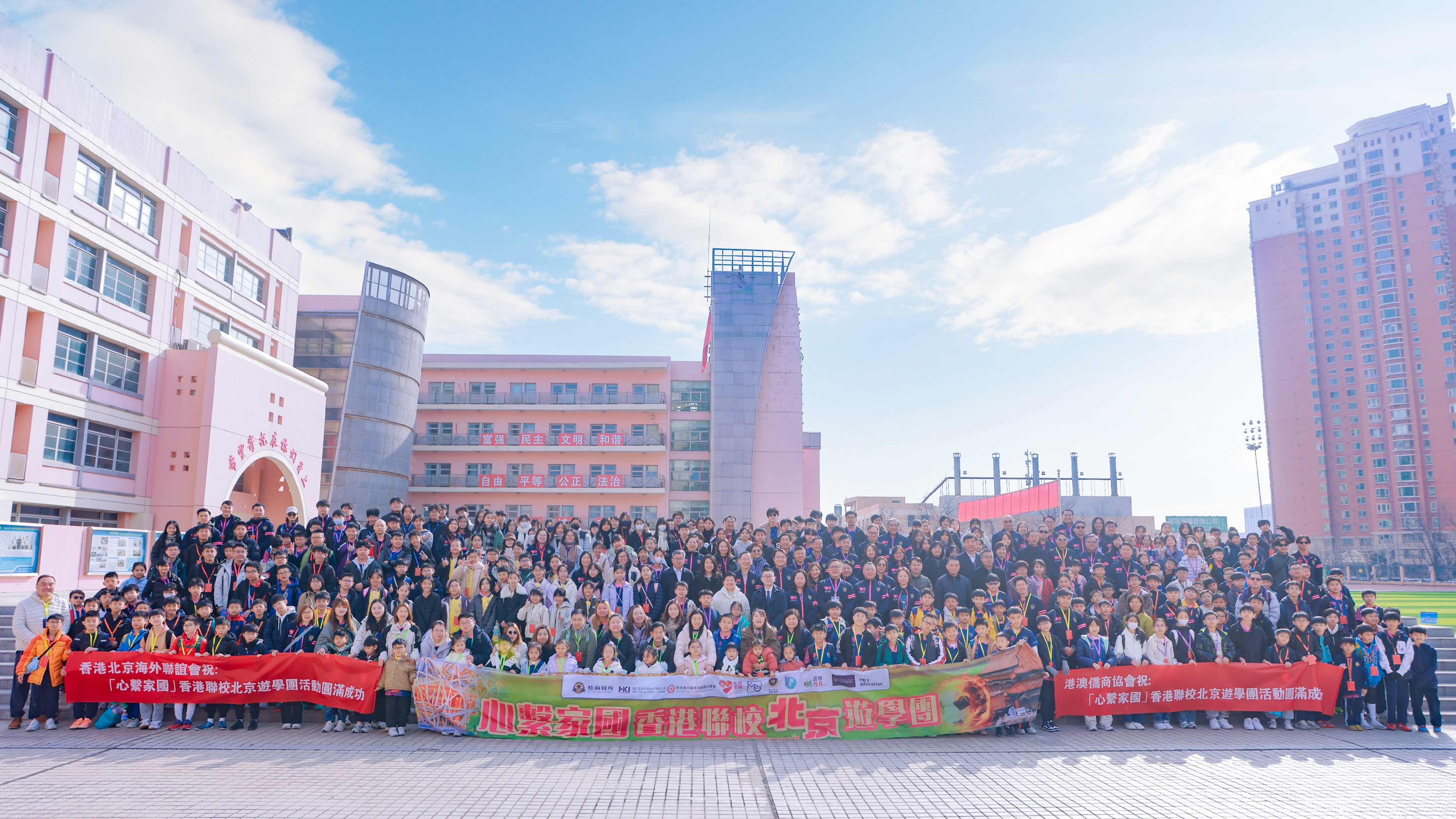 3月21日上午,300余名香港中小学生在怡海中学参加了升旗仪式。随后,缔结姊妹学校签约仪式举行,北京市丰台区怡海中学、北京市丰台区怡海小学、北京丰台区怡海幼儿园与香港观塘区联校20所中小学、幼儿园,北京市丰台区培智中心学校与三水同乡会刘本章学校,北京怡海国际米兰青训学院与香港晋峰足球会正式结为姊妹友好学校,双方还签署了京港两地青少年足球战略合作框架协议,未来将在课程、交流互访、资源对接等方面展开深度合作。