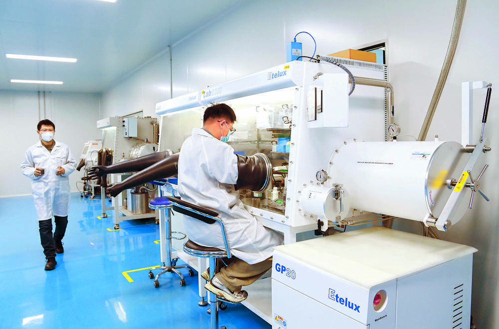 在衡水市故城县国钠能源科技(河北)有限公司,技术人员正在进行钠离子电池的研发实验。 记者 张 震 摄