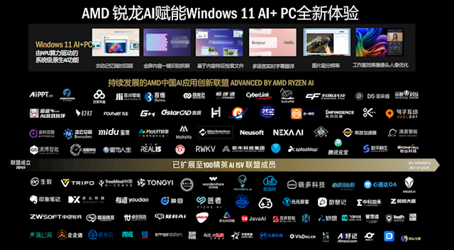经过短短不到两年的时间,锐龙AI不但得到了Windows 11 AI+ PC的原生助力,更得到了120家合作伙伴的鼎力支持,覆盖千行百业,让AI从一个概念成为人们日常生活、工作都不可或缺的好帮手。