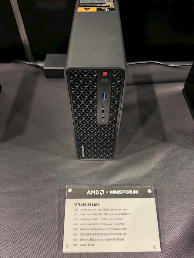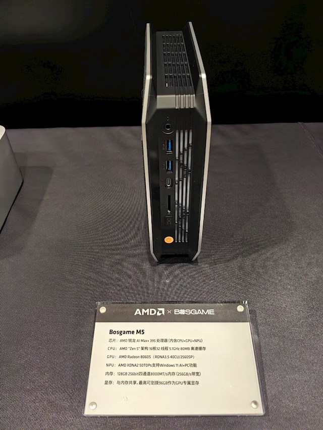 本次展示的锐龙AI Max 300系列产品包括笔记本、迷你机、一体机、游戏掌机等各种形态,清一色都是顶配锐龙AI Max 395,普遍搭配64/128GB LPDDR5X-8000统一内存。